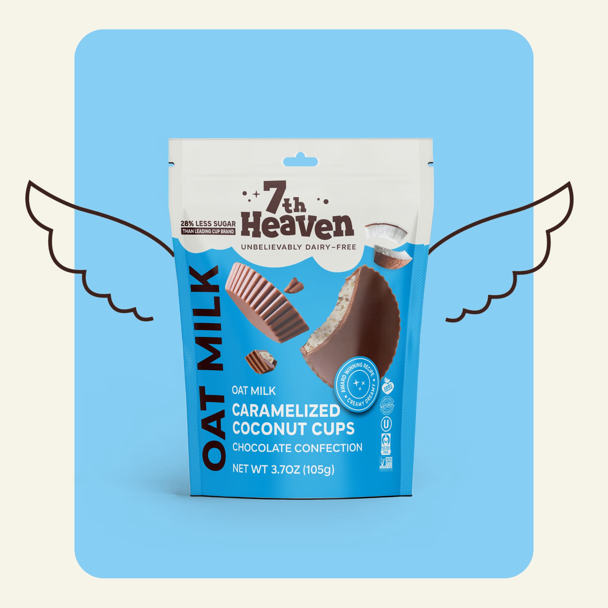 Say hello to our creamy, dreamy caramelized coconut cups! Unbelievably dairy-free and crafted to bring you that heavenly feeling with every bite. These cups are a blend of velvety smooth oat milk chocolate and a luscious caramelized coconut filling.