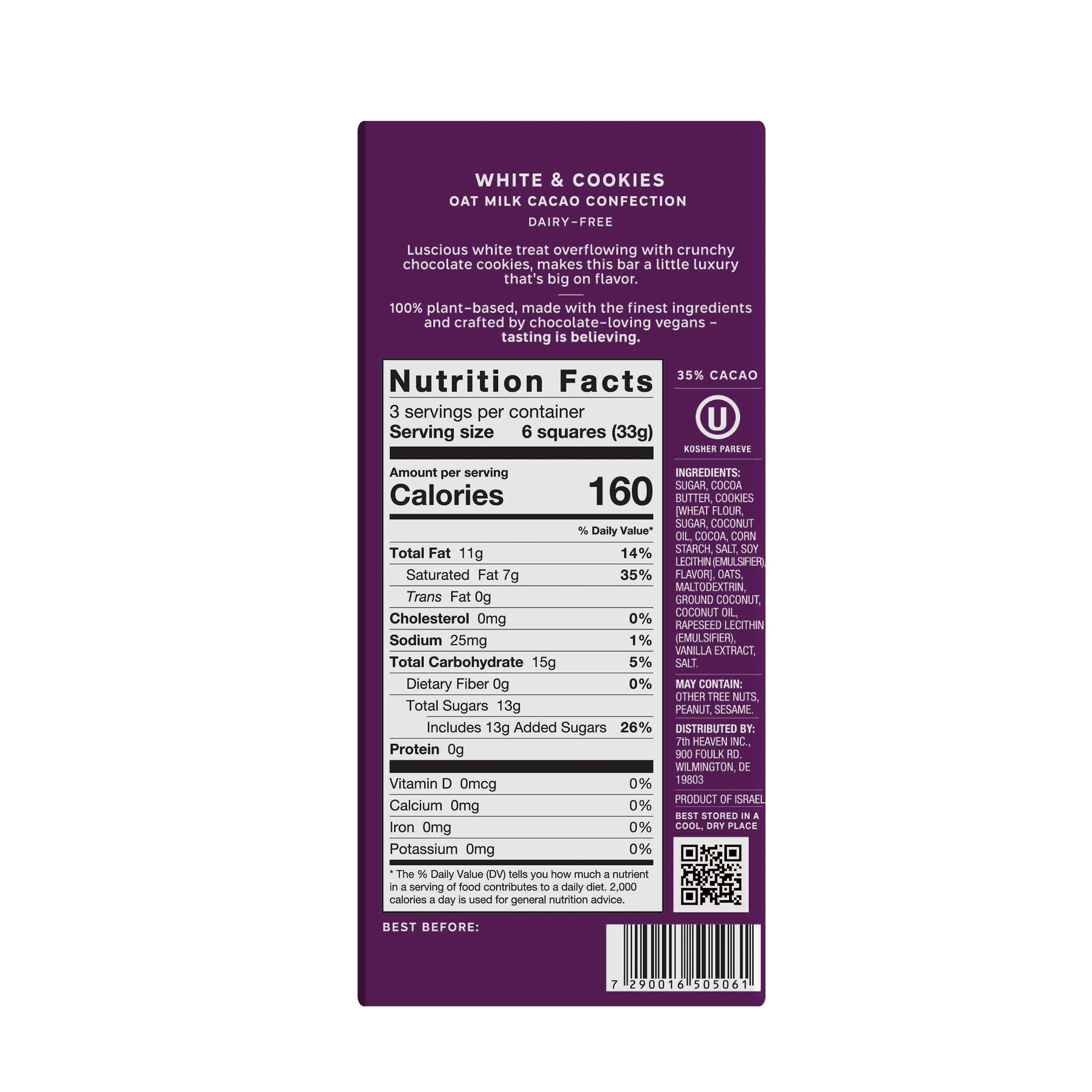 A customer favorite for a reason! Luscious white cacao and creamy oat milk swirled with crunchy chocolate cookies make this bar a little luxury that’s so big on flavor, you won’t believe it’s 100% vegan and all-natural.