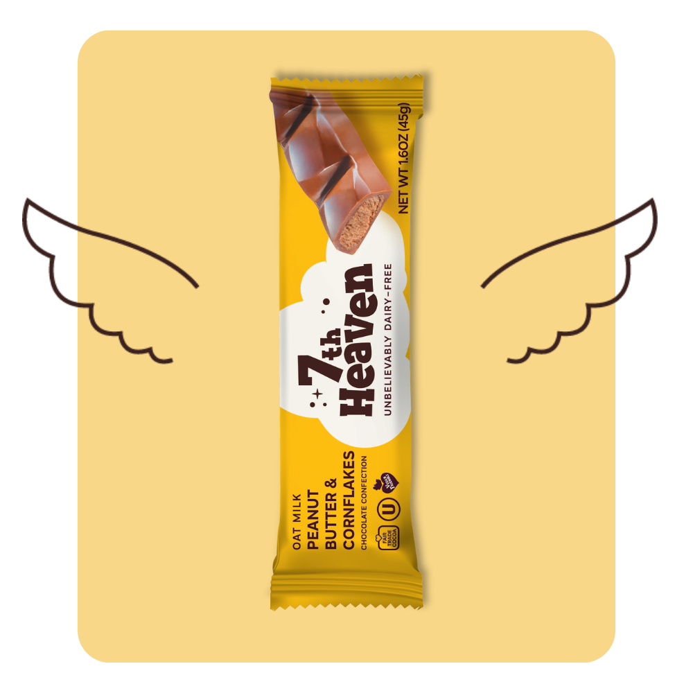 Salty, sweet, creamy, crunchy – this 100% vegan treat has it all! With crispy cornflakes and creamy peanut butter surrounded by our melt-in-your-mouth oat milk chocolate, this fun combo is guaranteed to be love at first bite.
