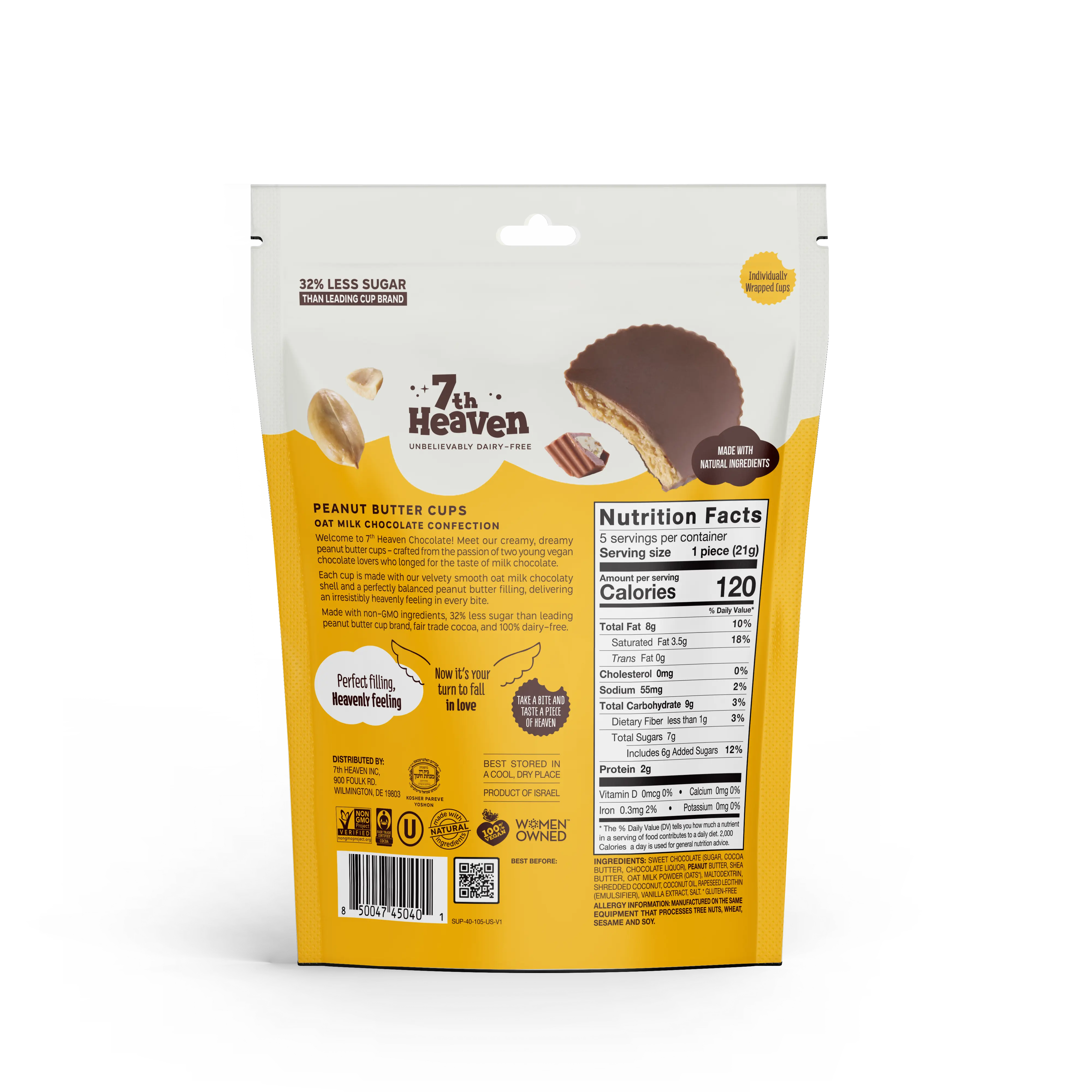 Made with our velvety smooth oat milk shell and a perfectly balanced peanut butter center, these cups are a treat that’s both indulgent and guilt-free. With 32% less sugar than leading brands, no artificials, and non-GMO ingredients, they’re proof that great taste can be good for you too.